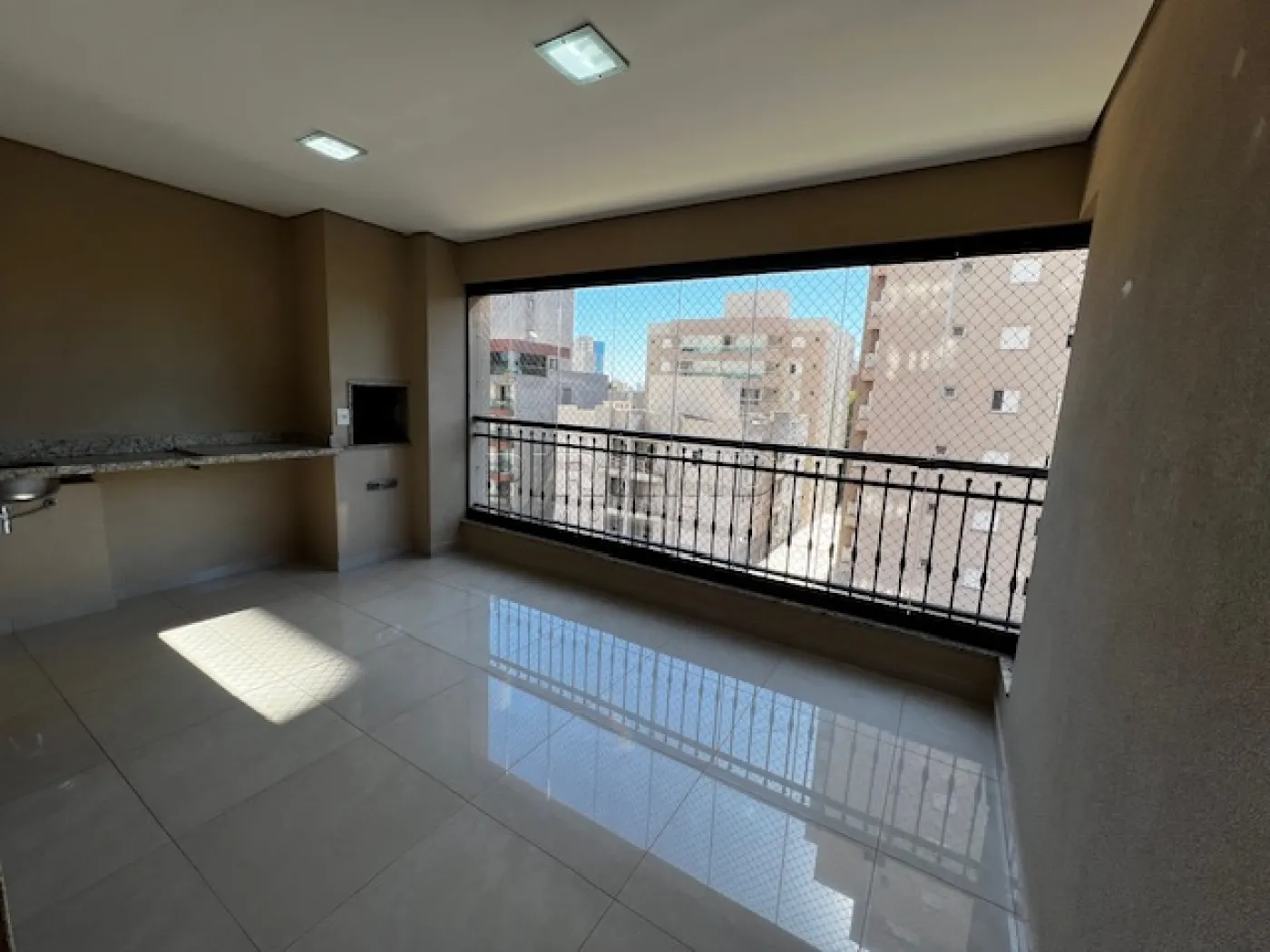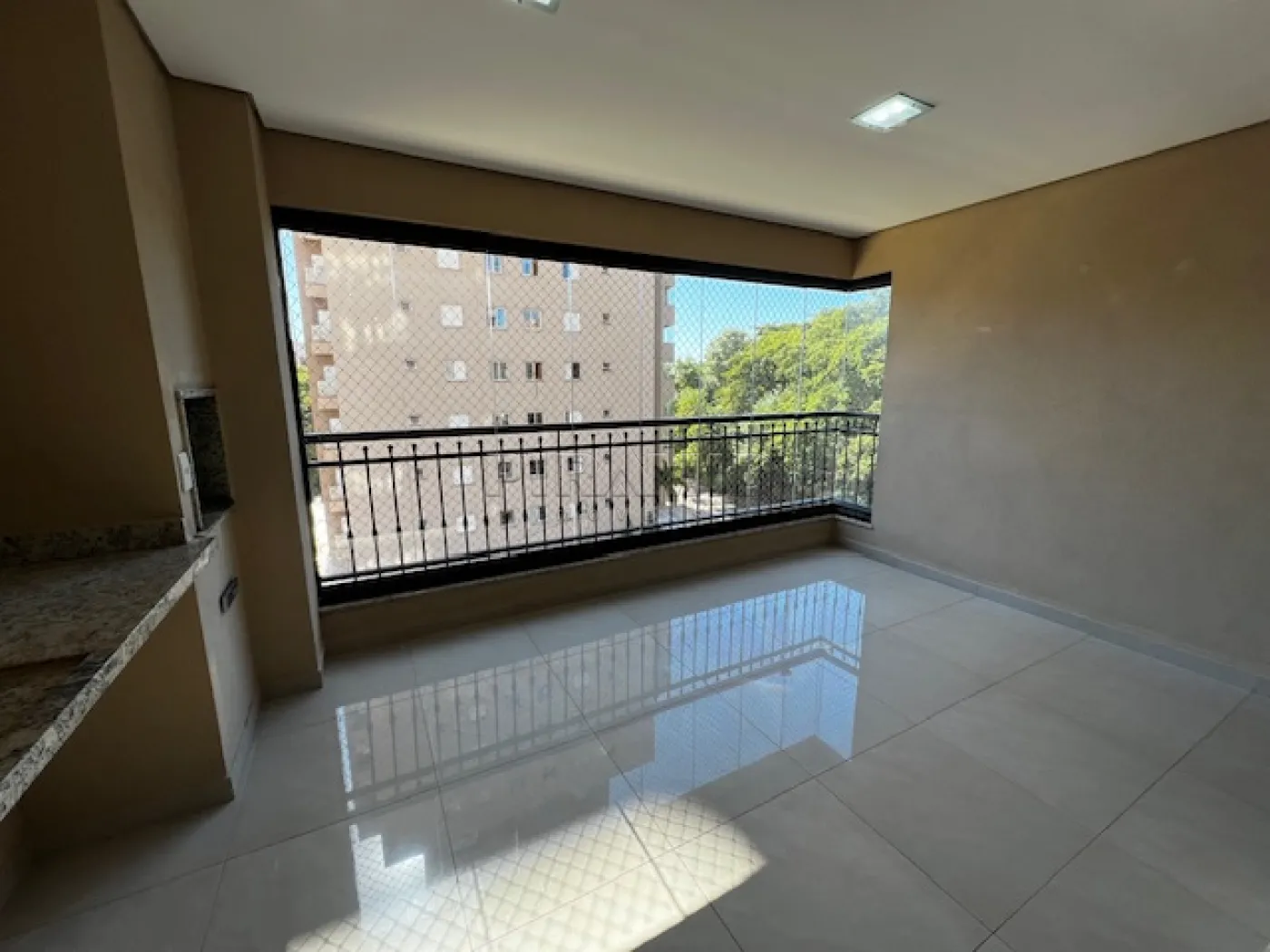 - Varanda gourmet com churrasqueira, fechamento em blindex;