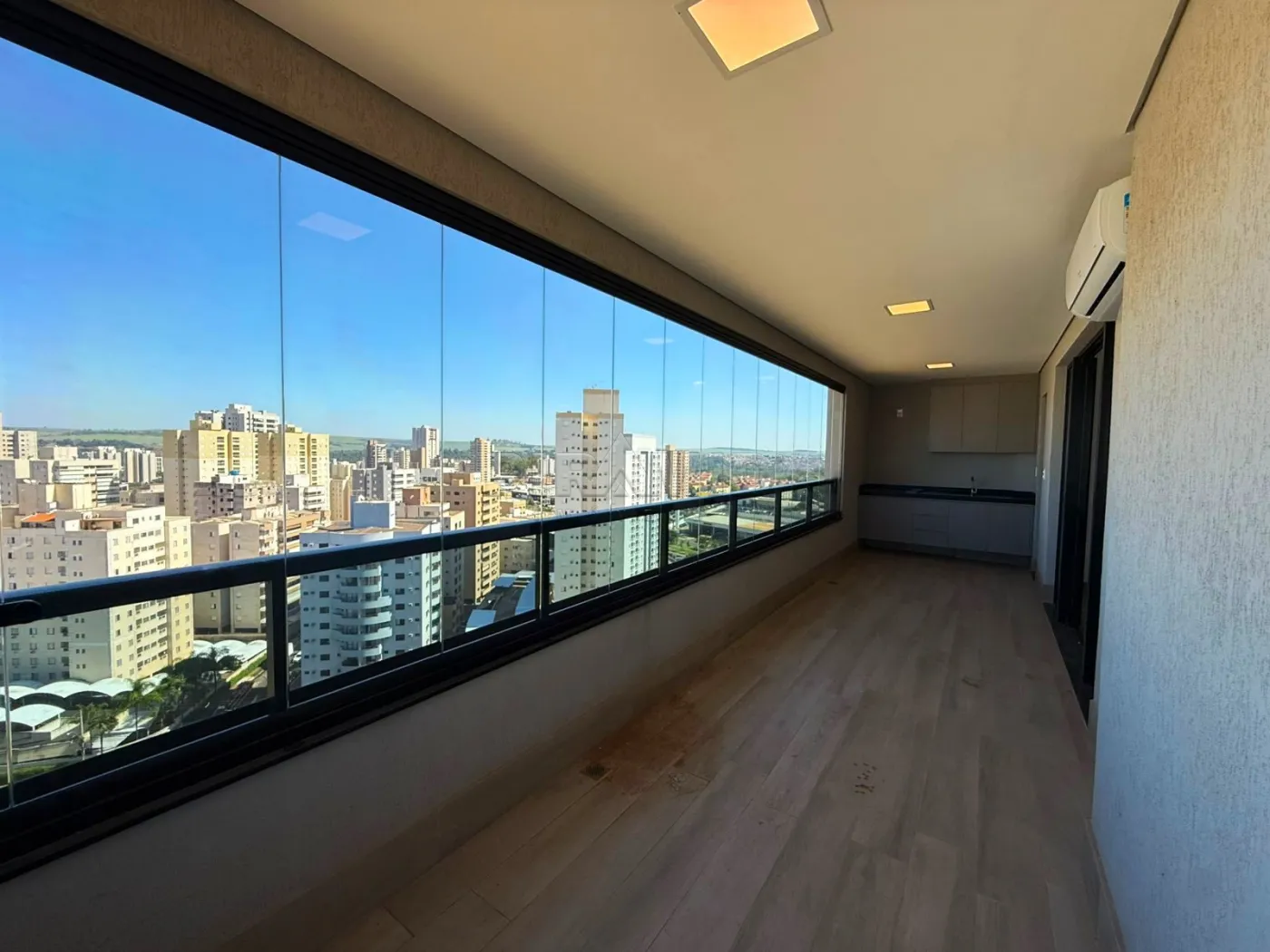- Varanda gourmet fechada em vidro com churrasqueira a gás e pia de apoio;