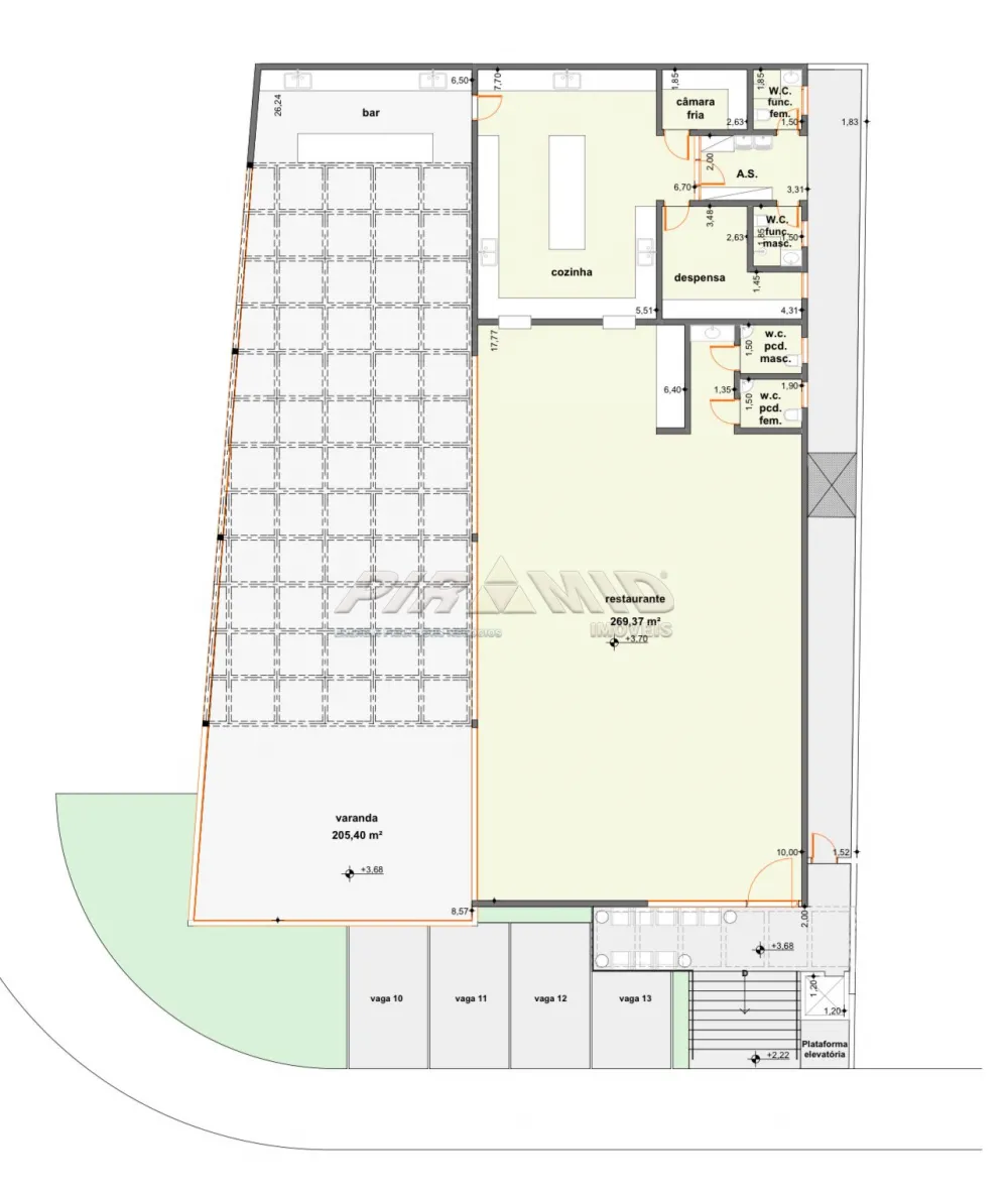 Imóvel recém construído, com 275 m² no piso superior e 455 m² no piso inferior, estacionamento frontal para 13 carros, elevador, 6 banheiros, sendo 2 PCD, possibilidade de divisão com cozinha, área de serviço, despensa, espaço para câmara fria.