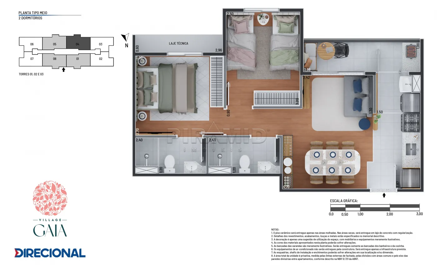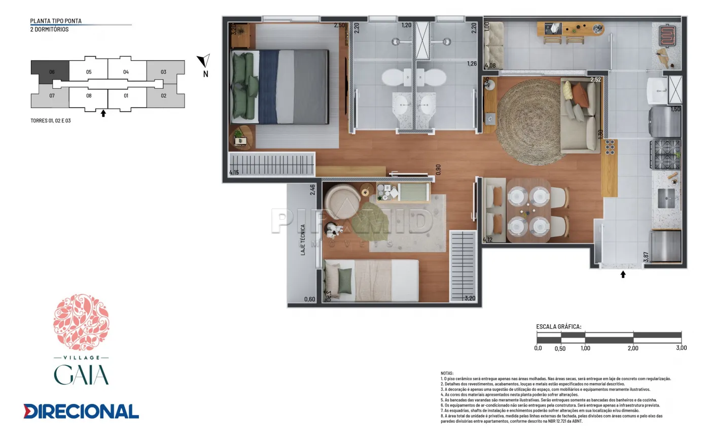 ÁREA DOS APARTAMENTOS: