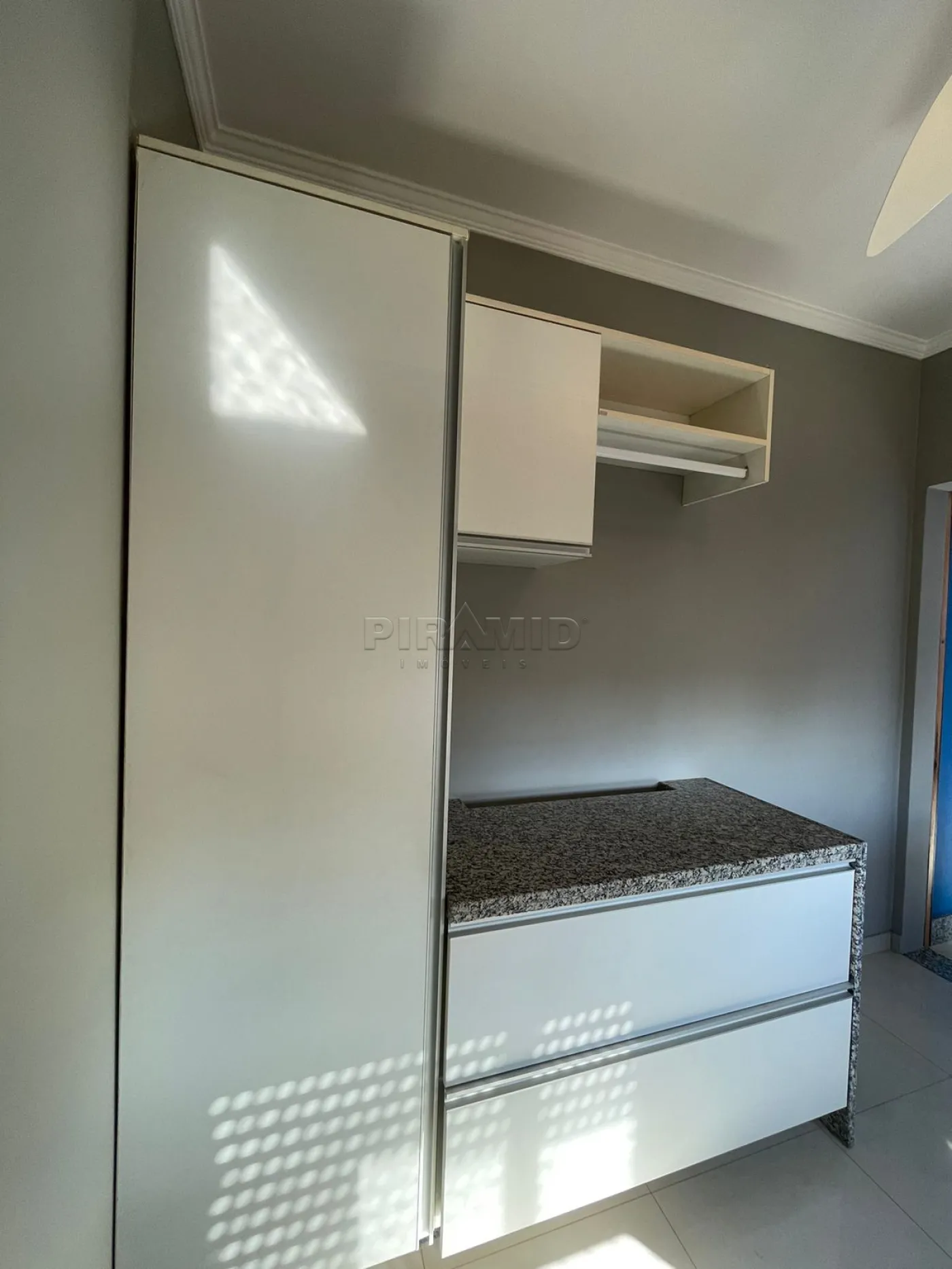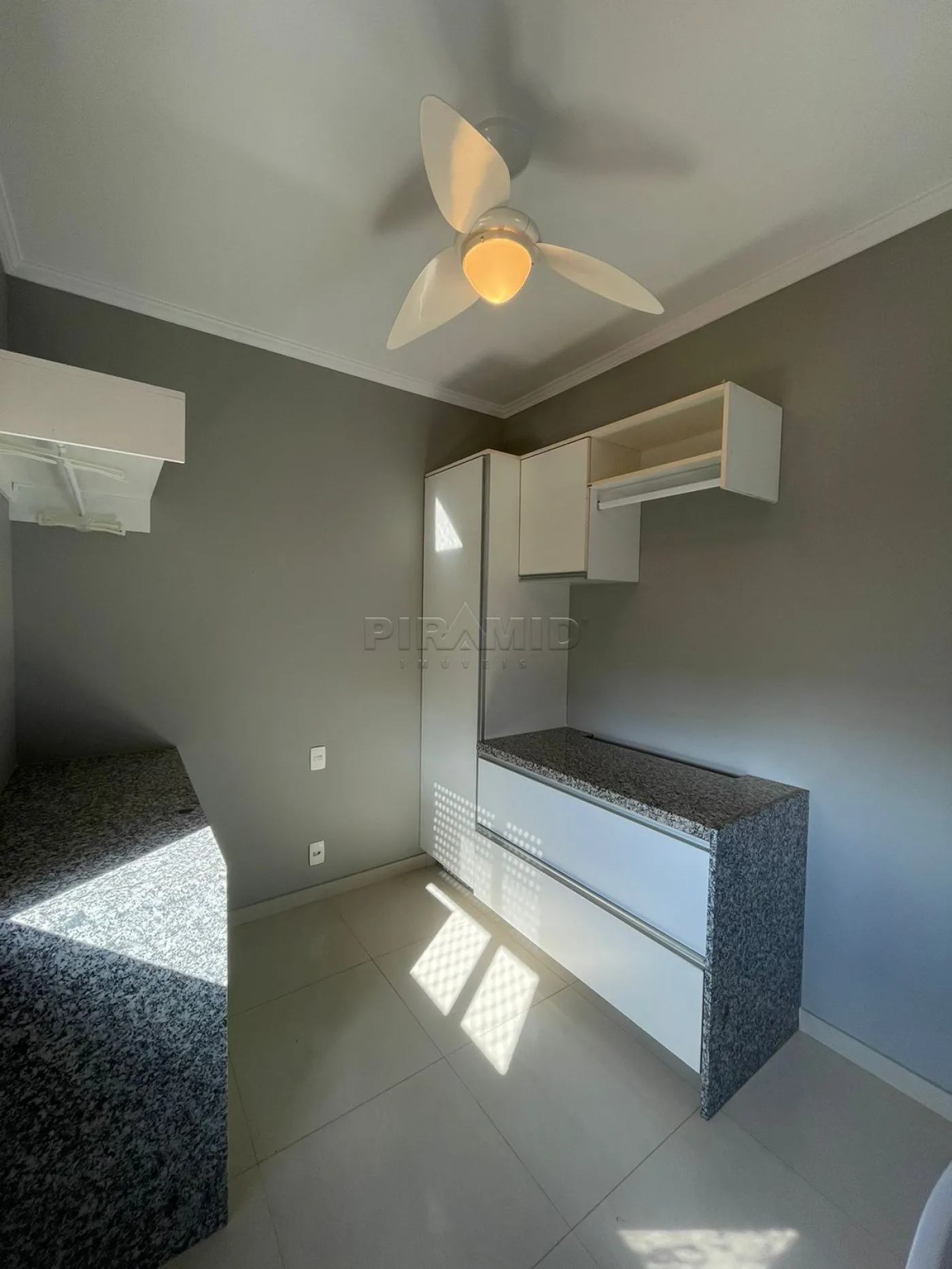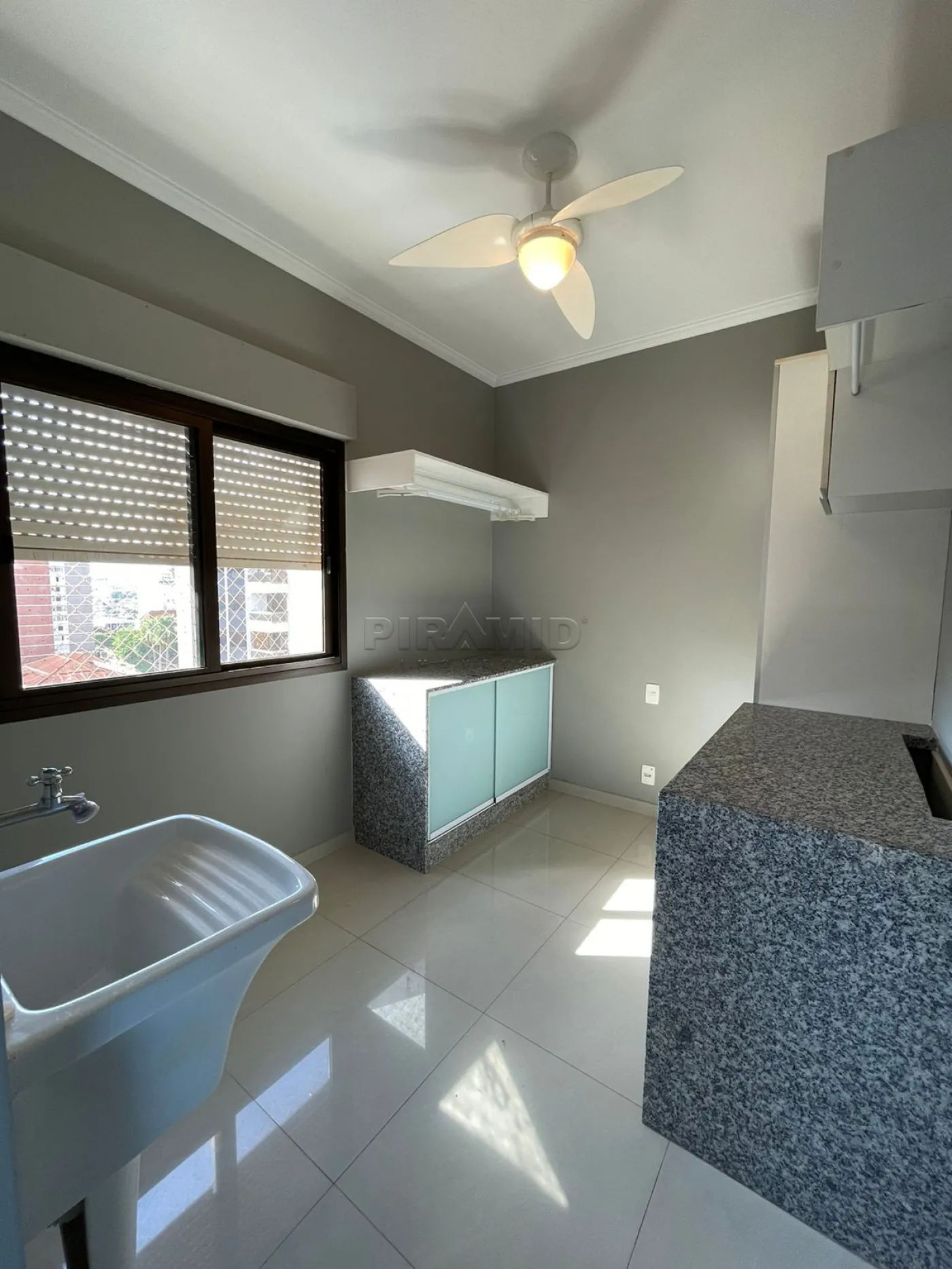 - Lavanderia com armários planejados e ventilador de teto;
