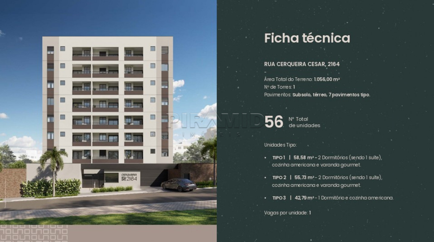 Localizado na Zona Sul de Ribeirão Preto, o edifício conta com 56 apartamentos, distribuídos em 7 andares, além de térreo e subsolo.