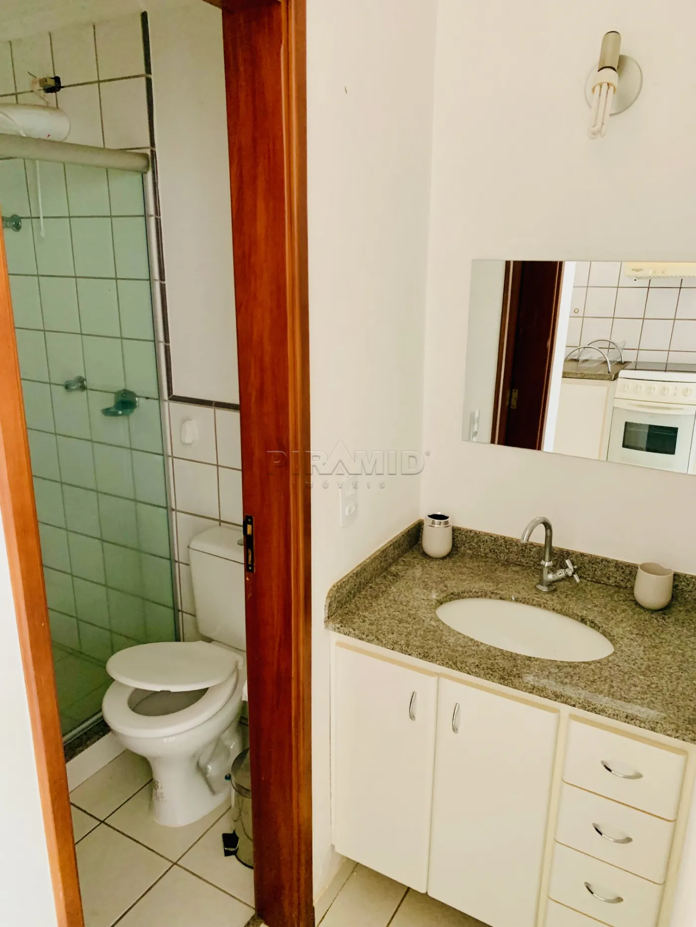 - Cozinha com gabinete, fogão e frigobar;